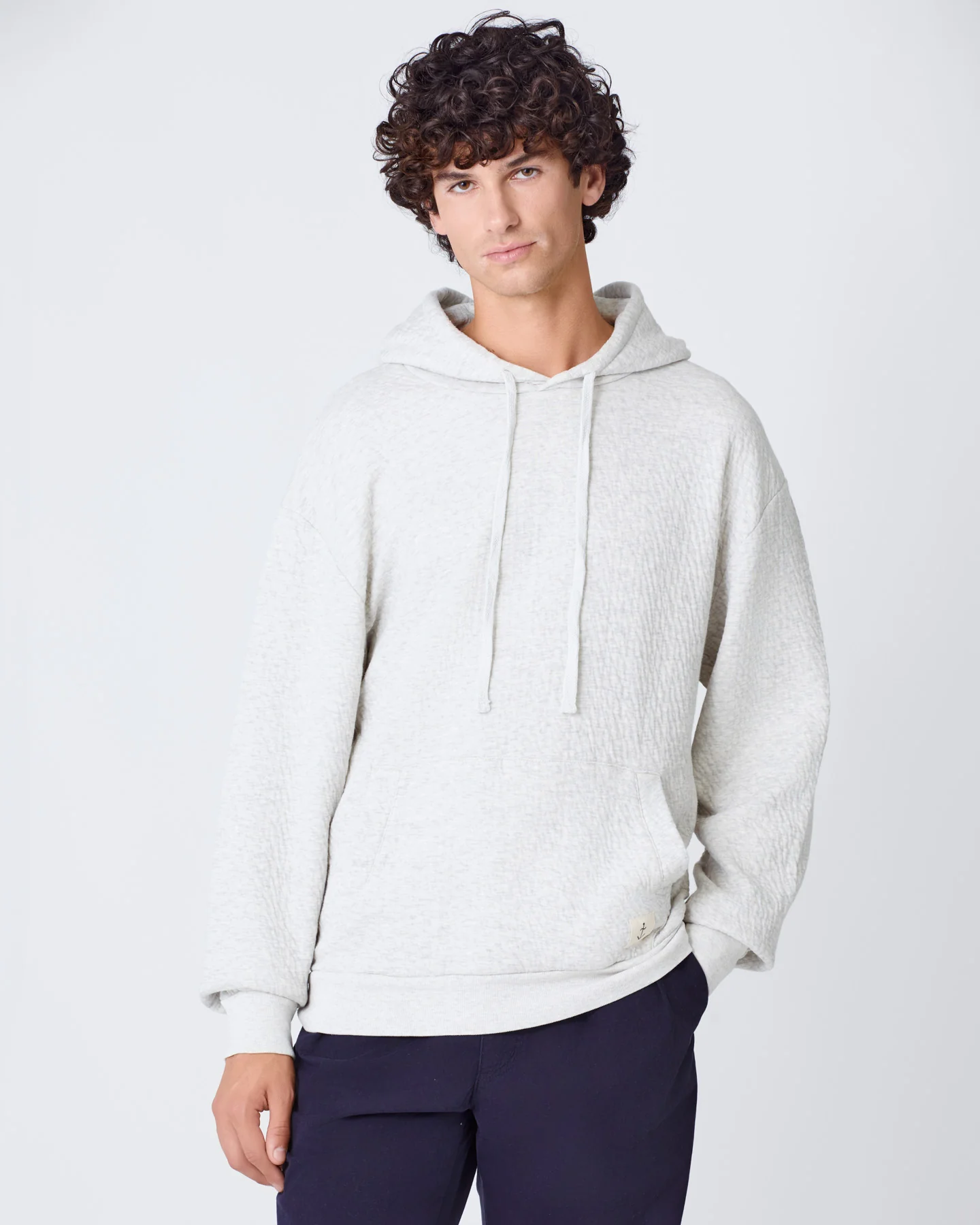 A soft textured cotton hoodie with a kangaroo pocket and a subtle stitched logo.