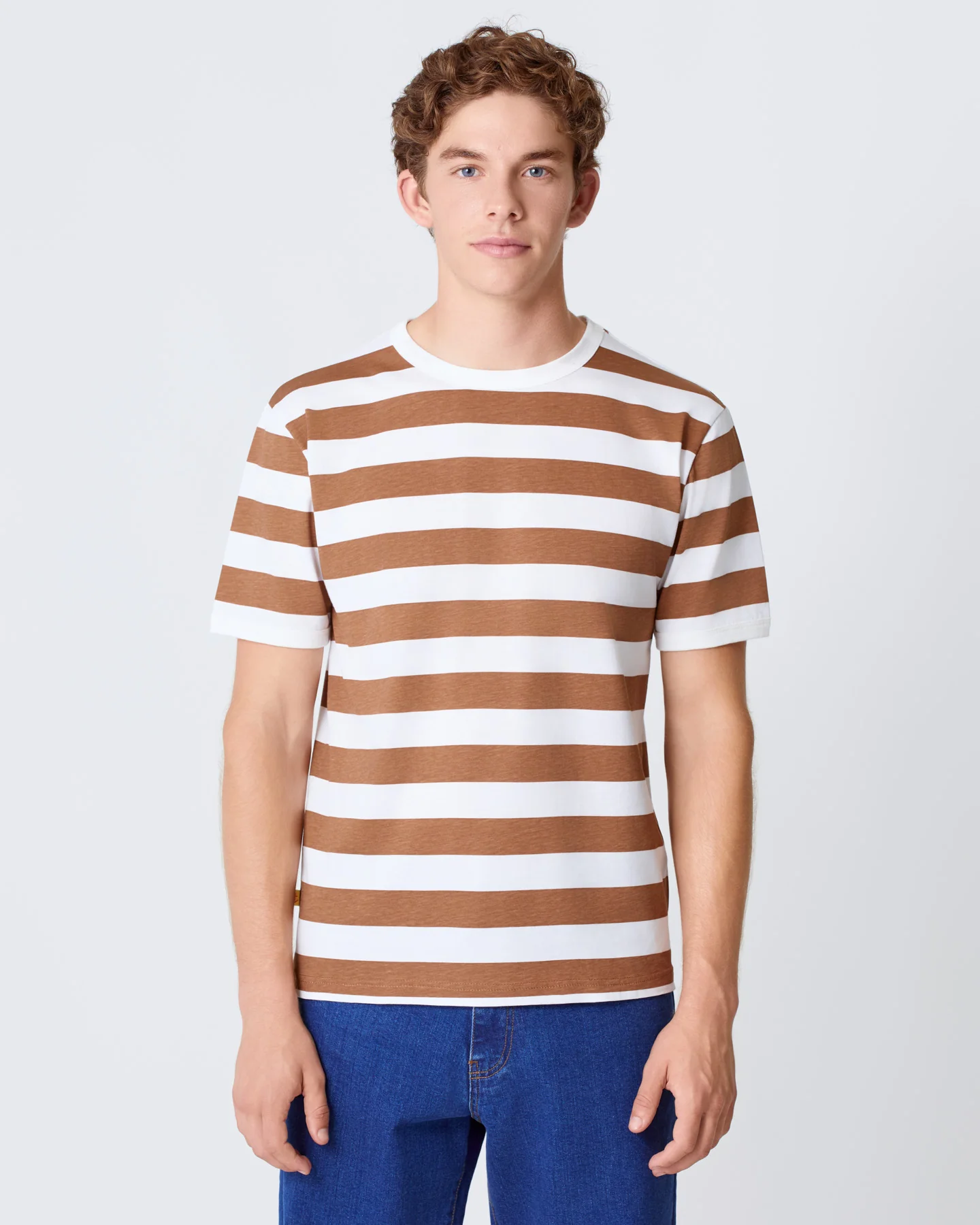 Meneres is a retro-inspired ringer T-shirt defined by contrast ribbed hems at the collar and sleeves.