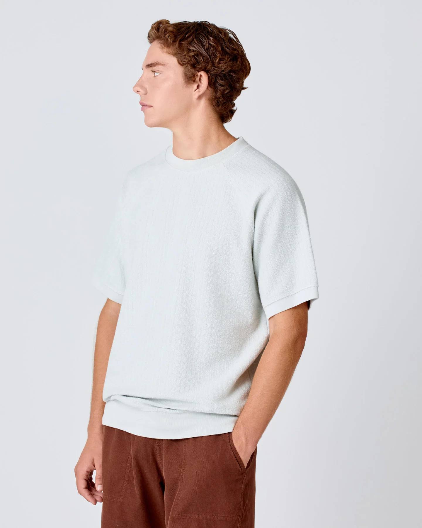 Retro-inspired sweat tee crafted from cotton terry, offering a soft yet structured feel.